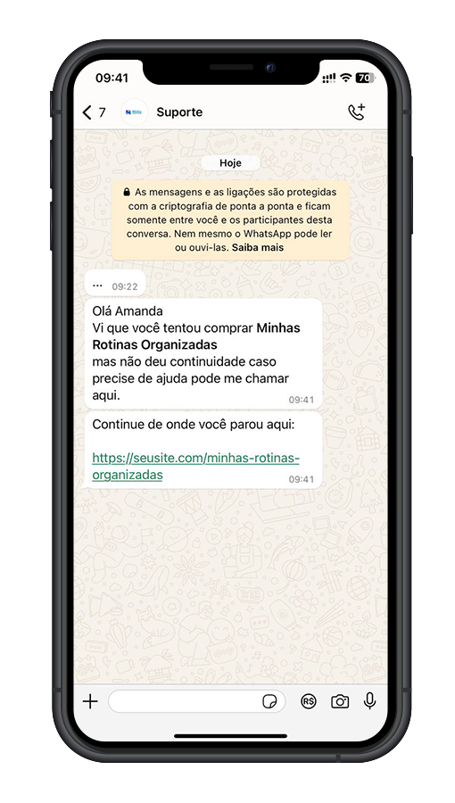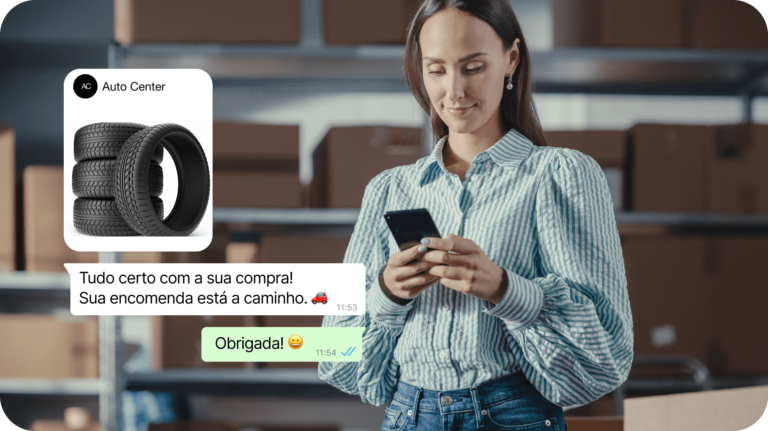 Envie atualizações instantâneas diretamente no WhatsApp dos seus clientes.